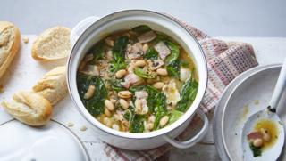 Miguel's quick budget bean stew is creamy, salty and hearty. It's also really flexible, so if you want to switch the beans or vegetables, feel free.