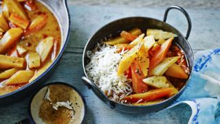 A cheap, vegetable Thai curry. The root veg have a sweet taste that benefits from a little spice. Make sure you're using vegetarian curry paste if cooking for veggies or vegans.