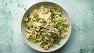 The ever-popular chicken caesar salad is made more substantial by adding pasta, but it still has the crunchy croûtons and creamy, tangy dressing we all love.