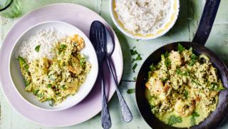This is a popular dish in Bengal, where of course both prawns and coconut abound. It’s normally served in a whole green coconut there, but that’s a bridge too far for us. I would suggest serving it, as in Bengal, as a little course in its own right, but it’s also delicious with some rice and flatbreads.