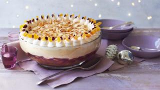 Mary's easy Christmas trifle with dried fruit compôte and lashings of sherry can be made up to 2 days ahead and decorated with whipped cream just before serving.