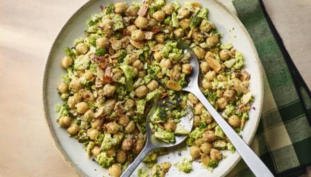 Blitzed broccoli and chickpea salad base