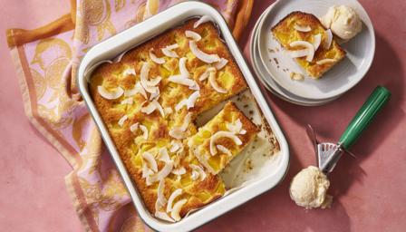 Coconut and mango yoghurt cake with cardamom ice cream
