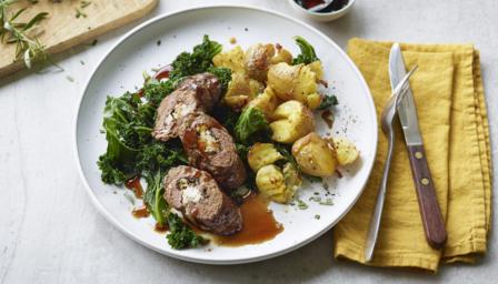 This stuffed lamb dinner for two tastes really special, but it’s deceptively quick and easy to make – microwave the potatoes to save time before flash-frying.