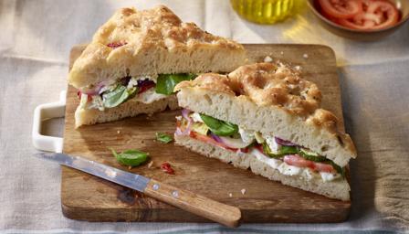 Marinated mozzarella focaccia sandwich