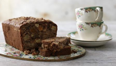 Quick apricot, apple and pecan loaf cake