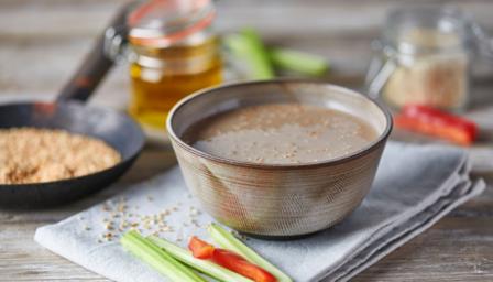 We’ve all got sesame seeds in the cupboard but I’m guessing most of you just throw them in a stir-fry, so now is the time to get creative! This savoury sauce is vegan, gluten-free and dairy-free and can be used in cakes, as a dip for crudités and so much more.