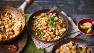 I wrote this recipe after a trip to a tofu factory just outside Leeds – it’s based on a pad Thai I filmed years ago in Bangkok at a stall by the Ghost Gate. This recipe is aromatic, with that perfect sweet-sour-salty-spicy blend of flavours.