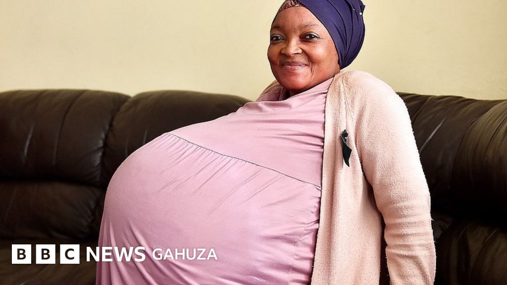 Mu kwezi kwa gatanu, bivugwa ko yagiranye ikiganiro na bo bamubwira ko biteguye kubyara abana umunani - ifoto igaragaza Madamu Sithole asa nk'utwite inda nkuru.