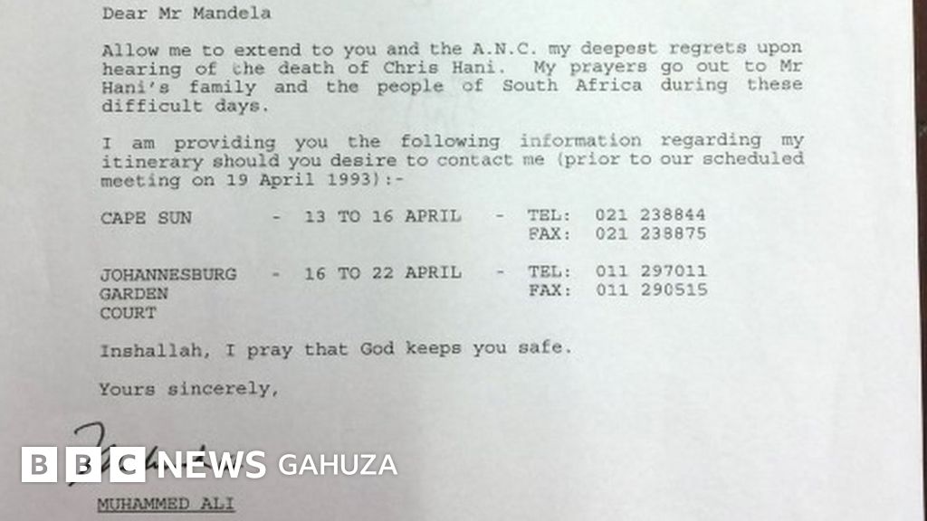 "Muhammad Ali yari ari muri Afurika y'Epfo mu rugendo rugufi mu kwezi kwa Kane 1993, ahagera mbere gato y'iyicwa rya Chris Hani ku itari ya 10 z'ukwa Kane.