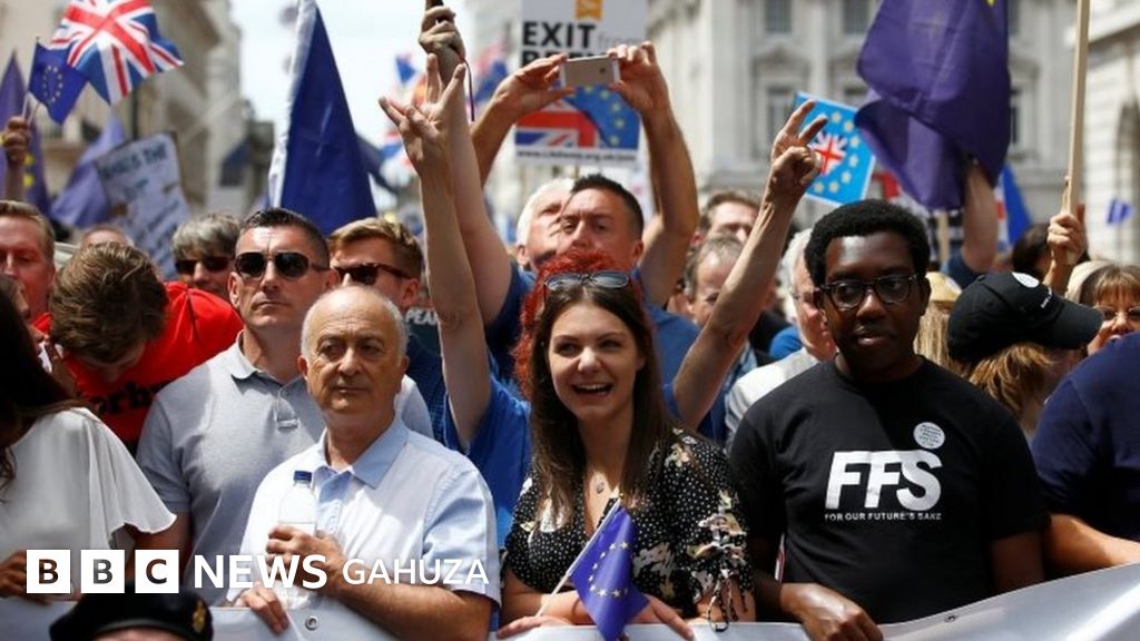 Ibihumbi vy'abanyagihugu bagiye mu myiyerekano mu gisagara ca Londres basaba amatora kamarampaka ya nyuma ku bijanye n'umugambi wo kuva mu muryango wa Buraya (Brexit).