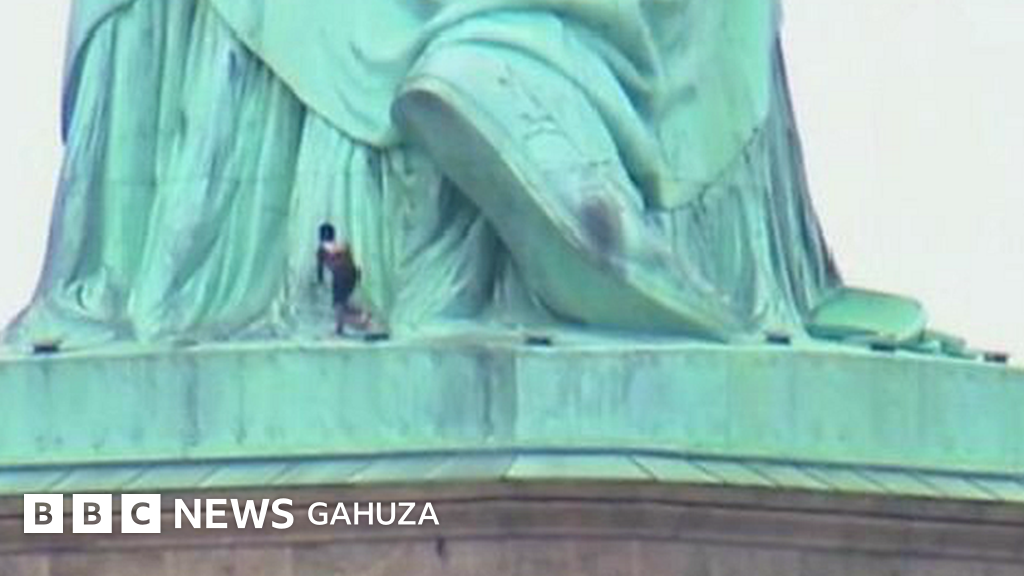 Amakuru aravuga ko bishoboka ko Madamu Okoumou yuriye iyo shusho mu rwego rwo kwigaragambya yamagana gahunda ya Perezida Trump yo guhagarika kwakira abimukira bajya muri Amerika.