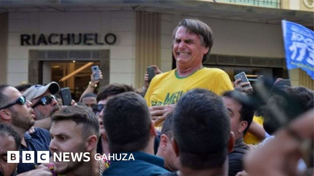 Uwitoza mu kibanza ca prezida aza imbere mu bashobora gutahukana intsinzi muri Brezil, Jair Bolsonaro, yacumiswe imbugita igihe yariko ariyamamaza.