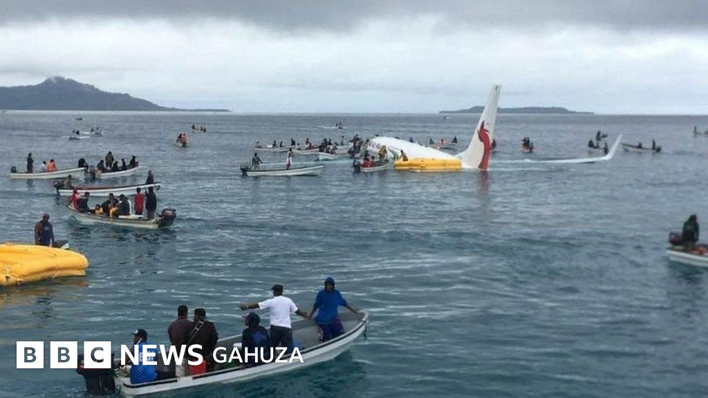 Iyi ndege ya kompanyi Air Niugini yo muri Papua New Guinea yagaragaye hejuru y'amazi magufi hafi y'inkombe.