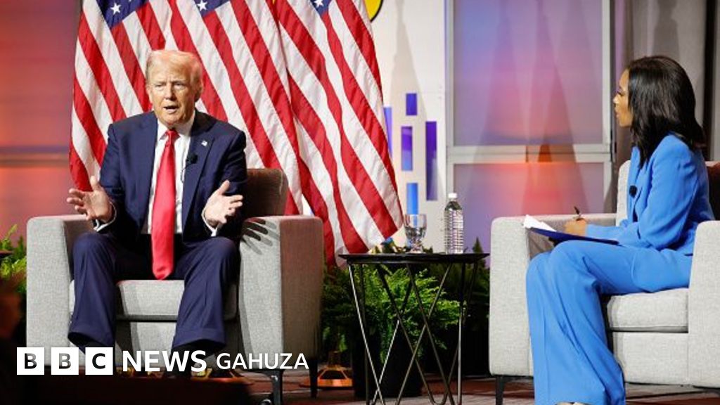 Donald Trump yifatiye mu gahanga Kamala Harris ku mamuko yiwe, hari mu kiganiro c’impari nyinshi mw’ihuriro ry’abanyamakuru b’abirabure.