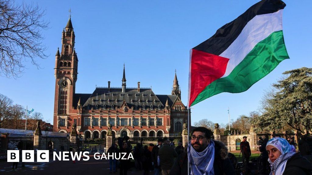 Insiguro y'isanamu, Abanye Palestine bakoraniye imbere ya sentare nkuru ya Onu i La Haye mu gushigikira bagenzi babo b'i Gaza