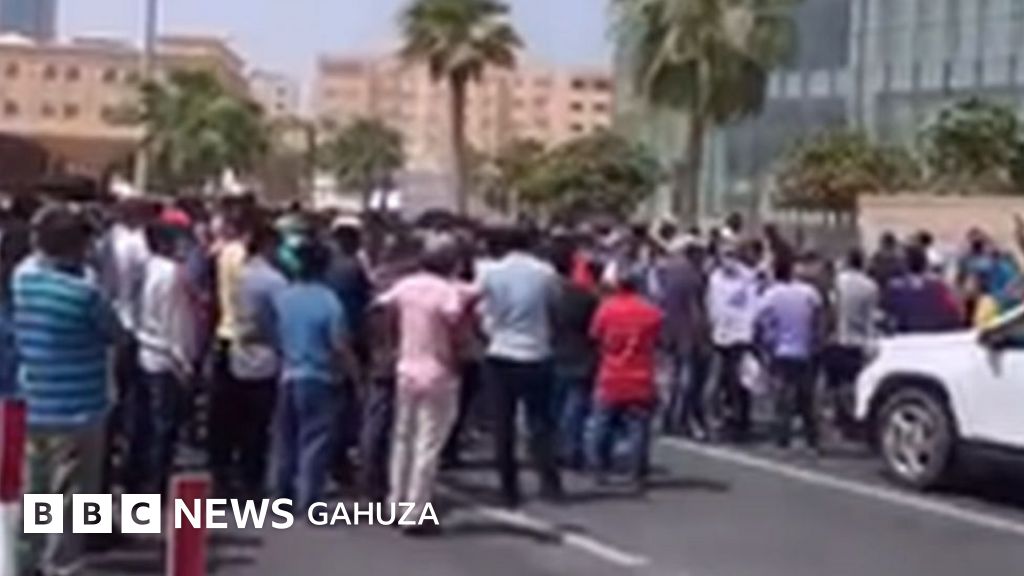 Abakozi bagera nibura kuri 60 bakoraniye imbere y’ibiro bikuru bya Al Bandary International Group i Doha tariki 14 z’uku kwezi - bamwe bivugwa ko bari bamaze amezi menshi badahembwa.