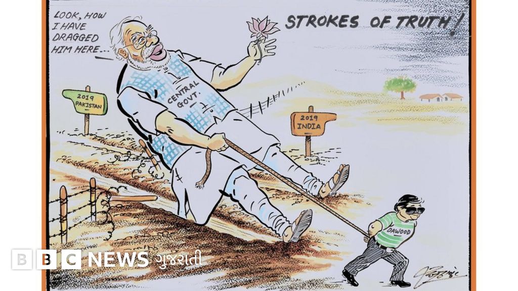 'સ્ટ્રોક્સ ઑફ ટ્રુથ' નામના આ કાર્ટૂનમાં દાઉદ ઇબ્રાહિમ મોદીને ખેંચતો હોય તેમ બતાવાયું હતું.