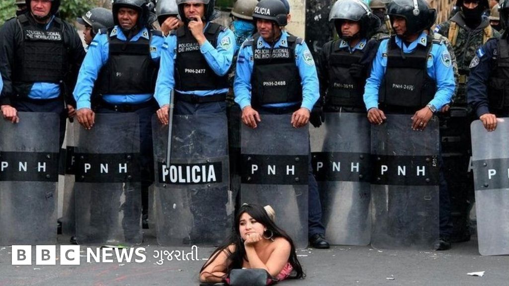 આ દરમિયાન હૉન્ડુરાસ શહેરના ટેગુચિગલ્પામાં હરોળબંધ ઉભેલા પોલીસની આગળ એક યુવતીએ આરામથી સુઈને પોતાનો વિરોધ નોંધાવ્યો હતો.