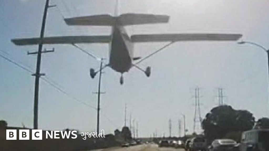 અમેરિકા: ટ્રાફિકથી ધમધમતા રોડ વચ્ચે પ્લેનનું ઇમરજન્સી લૅન્ડિંગ