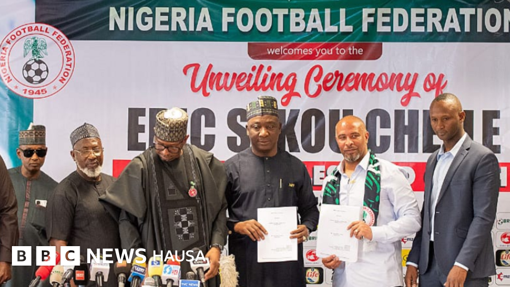 Hukumar ƙwallon kafar Najeriya, NFF ta gabatar da sabon kocin Super Eagles, Eric Chelle ranar Litinin a filin wasa na Moshood Abiola da ke Abuja, Najeriya.
