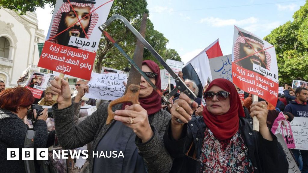 Daruruwan 'yan Tunusiya suna zanga-zangar adawa da ziyarar da Yarima mai jiran gadon Saudiyya Mohammed bin Salman ke yi a kasar, a yayin da ake ci gaba da ce-ce-ku-ce ka kisan fitaccen dan jarida Jamal Khashoggi.