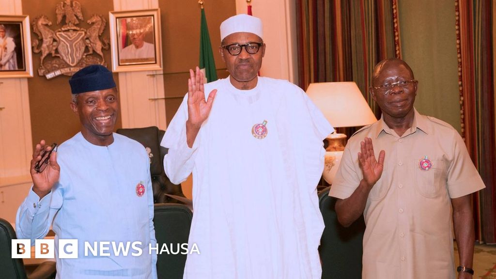 A wani hoton bidiyo da shugaban ya wallafa a shafin shi na Twitter, an ga Buhari ya rera wakar Kirsimeti tare da mataimakinsa Farfesa Yemi Osinbajo a kuma shugaban jam'iyyar APC Adams Oshiomhole.