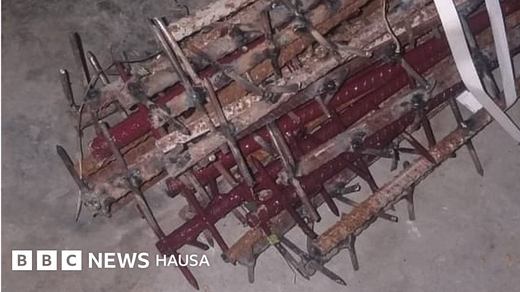 Hoton da aka fitar a ranar Alhamis ya nuna makaman a tsirarasu kuma da alama an yi su ne da rodi kuma aka saka musu ƙusoshi.