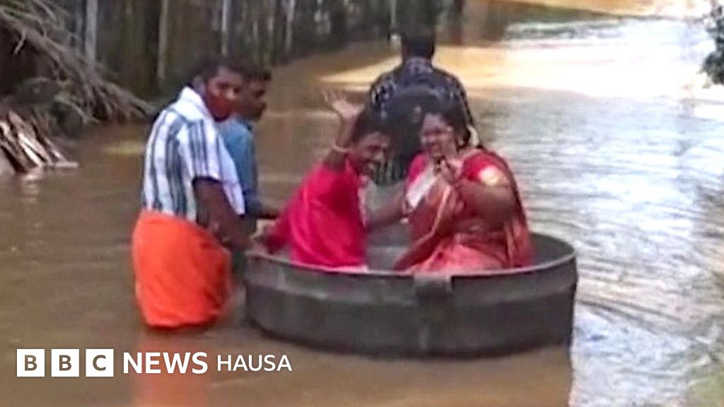 Hotunan wasu ma'aurata zaune a cikin tukunyar girki kan ruwa na ratsa tittuna da ambaliya ta shafa domin isa wajen bikinsu a gabashin India ya ja hankalin mutane.
