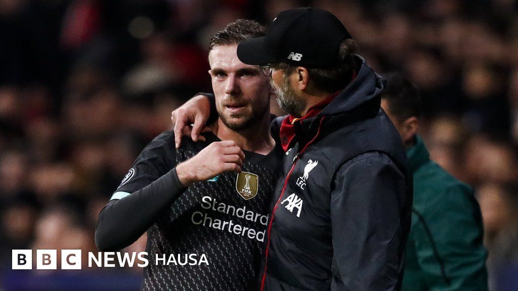 Kocin Liverpool, Jurgen Klopp, ya ce kyaftin dinsu Jordan Henderson zai yi jinyar mako uku sakamakon raunin da ya ji a cinyarsa a karawar da suka yi da Atletico Madrid.