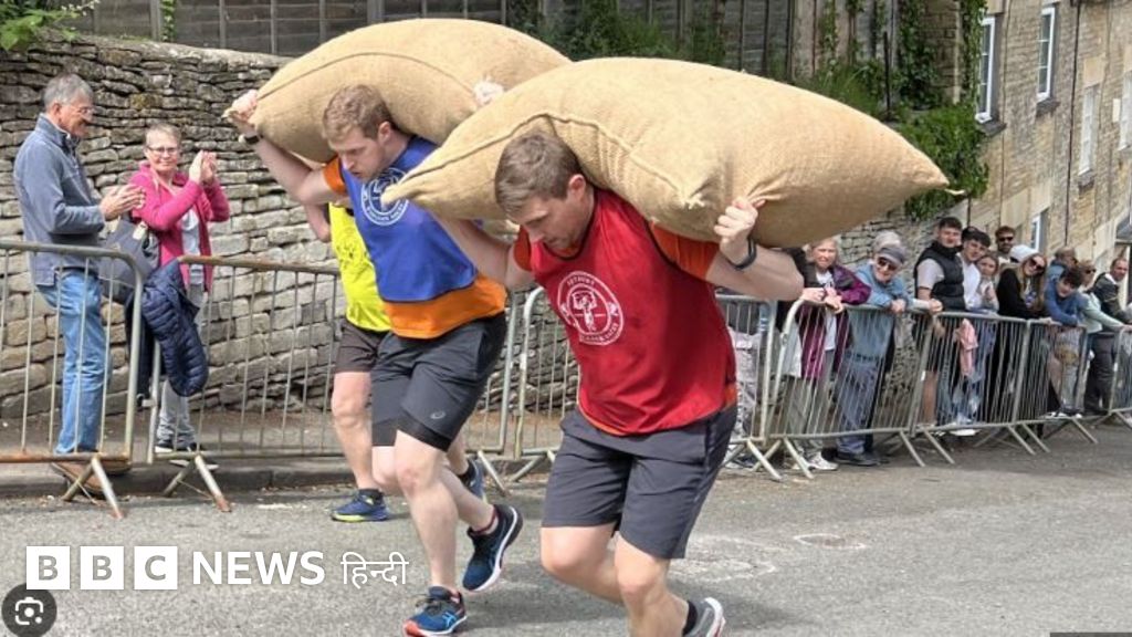 इंग्लैंड के एक शहर में लोग ऊन से भरे बोरे लेकर दौड़ लगाते हैं.
