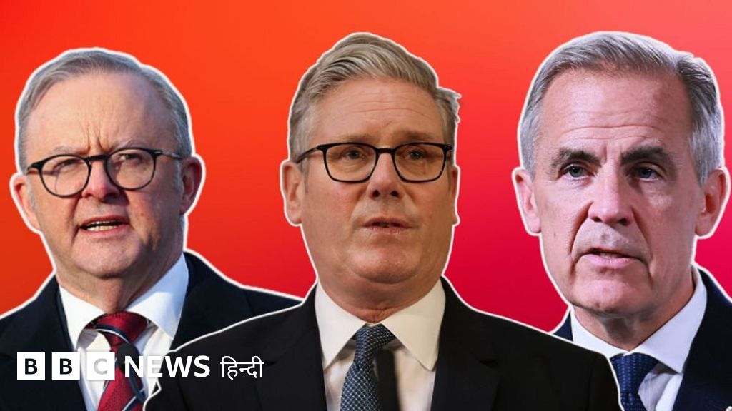 इमेज कैप्शन, ऑस्ट्रेलिया के प्रधानमंत्री एंथनी अल्बनीज़, ब्रिटेन के प्रधानमंत्री किएर स्टार्मर और कनाडा के प्रधानमंत्री मार्क कार्नी