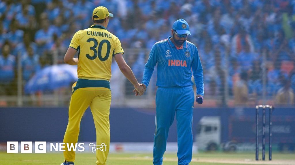 इमेज कैप्शन, आईसीसी वर्ल्ड कप 2023 फ़ाइनल में टॉस के वक़्त हाथ मिलाते भारतीय कप्तान रोहित शर्मा और ऑस्ट्रेलिया के कप्तान पैट कमिंस. ऑस्ट्रेलिया ने भारत को छह विकेट से हरा दिया.