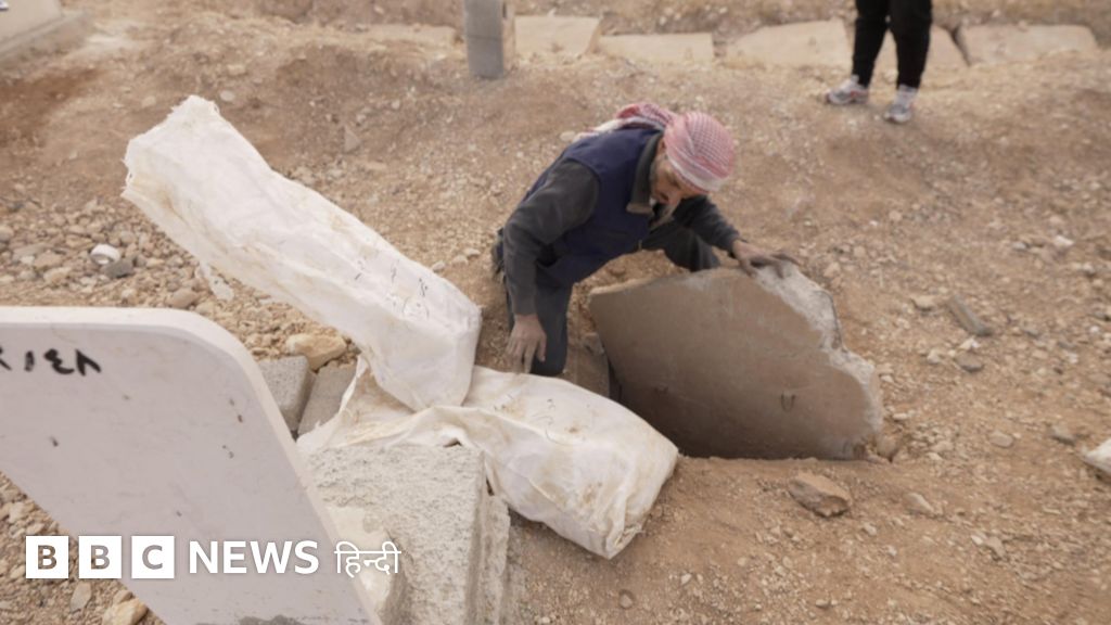 अब असद के भागने के एक सप्ताह बाद, इस ख़ाली क़ब्रिस्तान के एक कोने में कंक्रीट की स्लैब को हटाया गया है, जिससे एक उथली क़ब्र नज़र आई है.