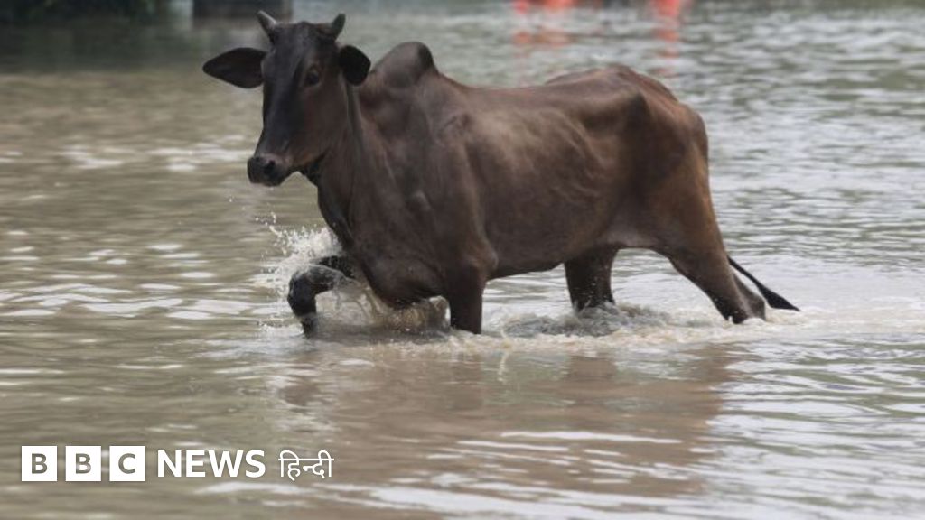 वीडियो में देखा जा सकता है कि शहर के बमहौर इलाके़ के रेलवे पुल के नीचे उफनती नदी में गायों को खदेड़ा जा रहा है. इसके बाद कई गायें तेज़ बहाव में स्टॉप डैम में जा गिरीं.