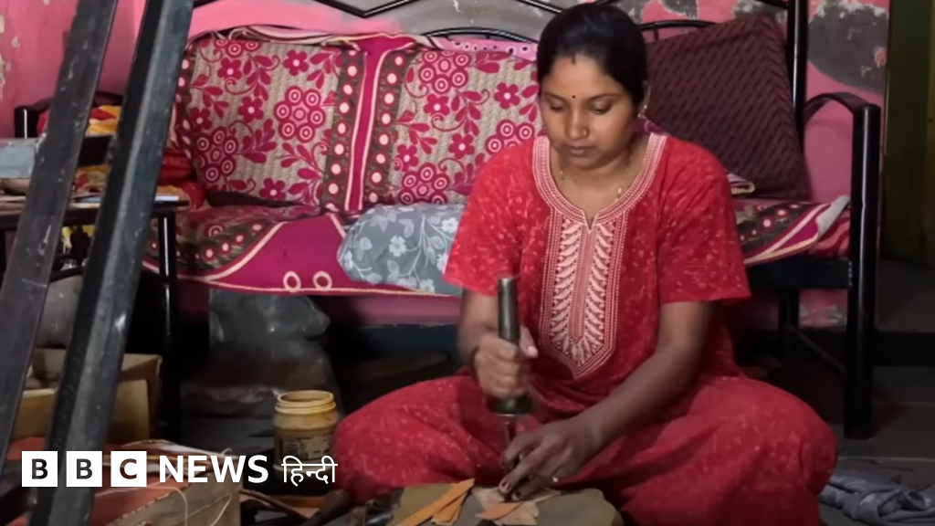 सुबह रसोई का काम ख़त्म करने के बाद प्रभा सातपुते अपने घर के सामने चमड़े के एक बड़े टुकड़े को मनचाहे आकार में काट रही थीं. वह कई सालों से यह काम कर रही हैं.