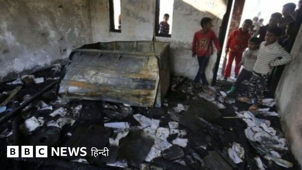 इमेज कैप्शन, भारत प्रशासित कश्मीर का एक स्कूल जिसे जला दिया गया था.