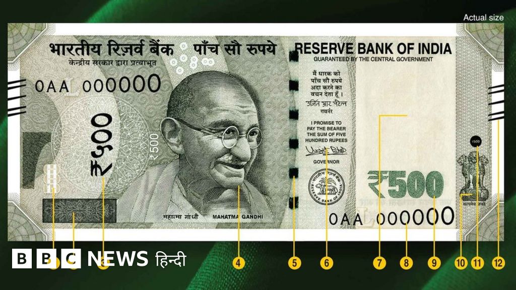 - दाईं तरफ़ देवनागरी में 500 रुपए लिखा है.