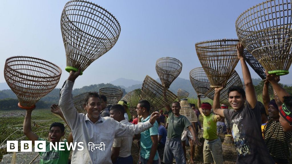 असम में मछुआरा समुदाय के लोगों ने बिहू मनाया. इस समुदाय में लोग पूरी रात नाचते-गाते हैं और साथ मिल कर खाना खाते हैं.