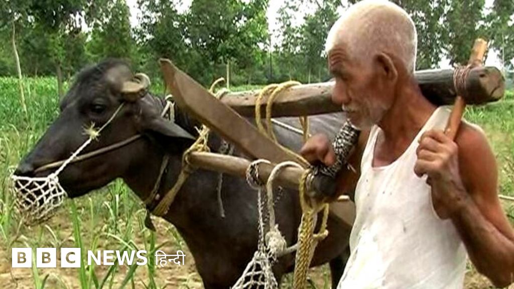भैंसे के साथ हल में जुता कर्मयोगी किसान