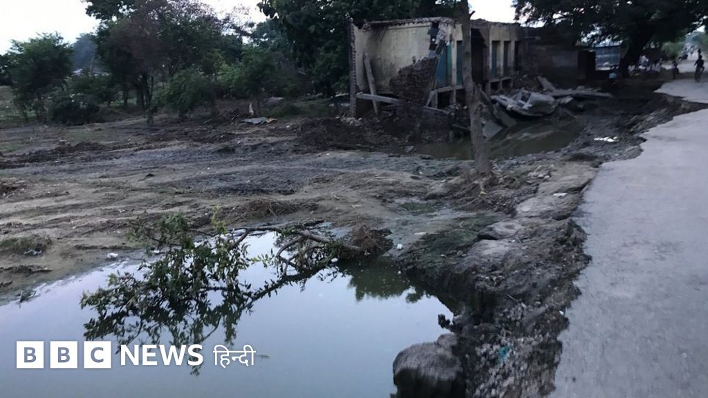 इमेज कैप्शन, जहां से होकर पानी गुज़रा है, वहां पर तबाही के निशान नज़र आते हैं.