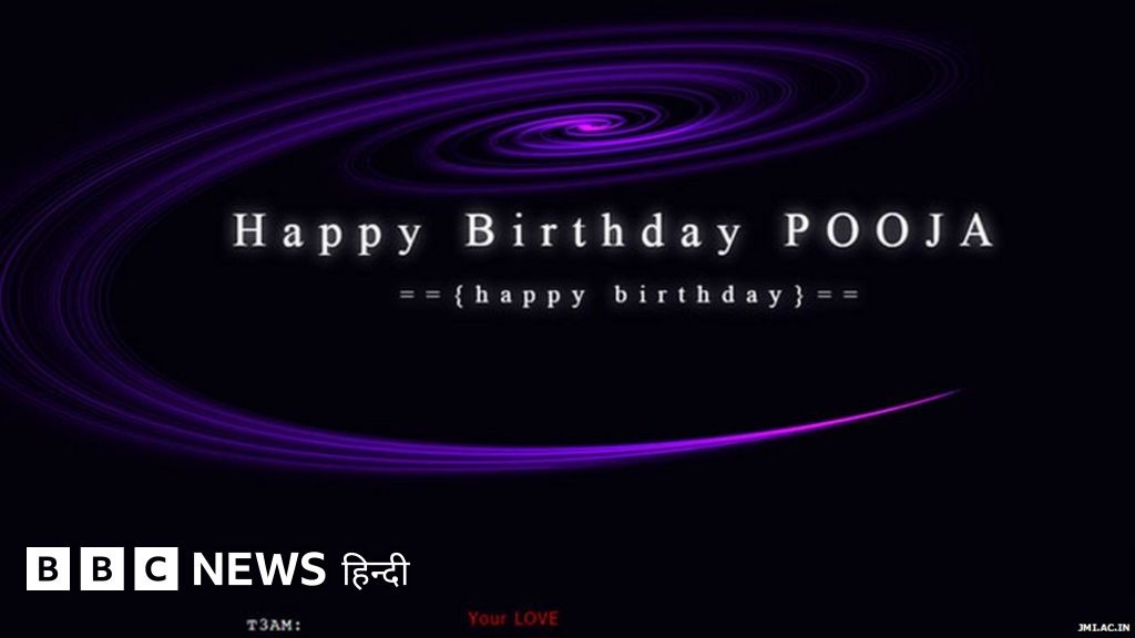 वेबसाइट www.jmi.ac.in पर लॉग इन करने पर एक काले रंग की स्क्रीन पर अंग्रेज़ी में "हैपी बर्थडे पूजा" लिखा हुआ नज़र आ रहा है.