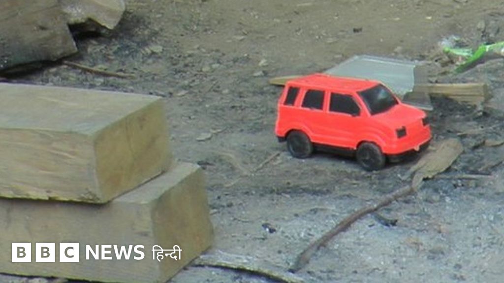 इन दो खिलौनों को वो कभी आगे खींच कर ले जाता तो कभी पीछे. उसके हाथों पर राख का रंग चढ़ गया था, लेकिन इस बात से अनजान वो चुपचाप राख पर अपनी खिलौना गाड़ियों को चलाने की कोशिश कर रहा था.