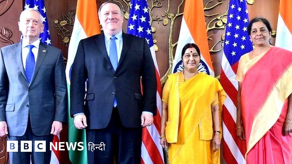 भारत की विदेश मंत्री सुषमा स्वराज, रक्षा मंत्री निर्मला सीतारमण, अमरीका के विदेश मंत्री माइक पॉम्पियो और रक्षा मंत्री जेम्स मैटिस