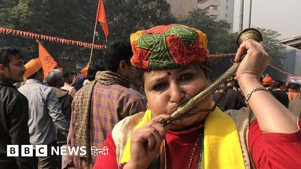 दुदुंभी बजाती महिला, हाथों में ध्वज पताका लिए युवक, कुछ भगवा टी-शर्ट और कैप्स धारण किए हुए और राम के गीत गा रहे नौजवान, सब हिस्सा थे उस रैली का जो रविवार को विश्व हिंदू परिषद ने राम मंदिर निर्माण के लिए दिल्ली के रामलीला मैदान में आयोजित की थी.