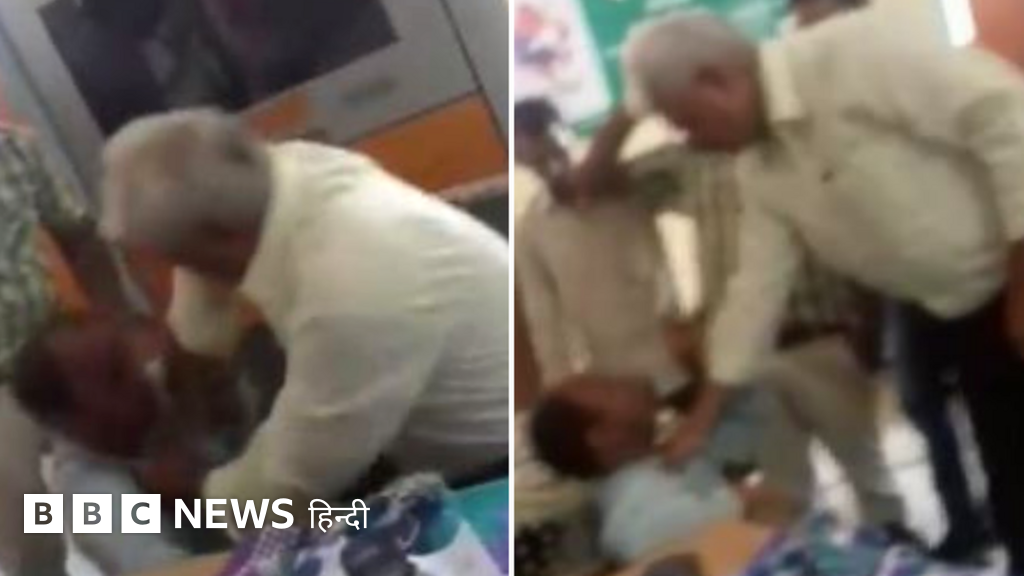 इस वायरल वीडियो में दिखाई देता है कि एक शख़्स हाथ जोड़े कुछ लोगों से माफ़ी माँग रहा है जबकि दूसरी तरफ़ सफ़ेद कमीज़ पहने एक शख़्स अपने सहयोगियों की मदद से उसे पीट रहा है. जिस कमरे में यह सब हो रहा है, वह देखने में एक सरकारी दफ़्तर लगता है जिसमें कुछ और लोग भी मौजूद हैं.