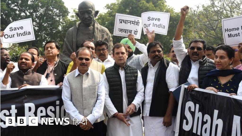 वहीं कांग्रेस नेता राहुल गांधी और अन्य सांसद महात्मा गांधी की मूर्ति के पास गृहमंत्री अमित शाह का इस्तीफ़ा मांगते हुए धरने पर बैठ गए.