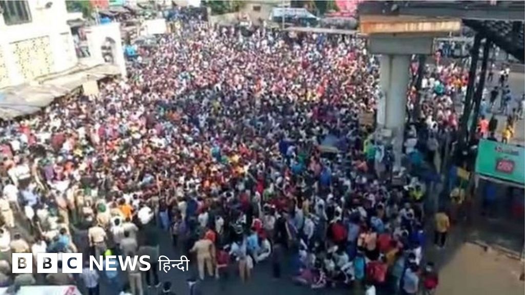 कोरोना लॉकडाउन के दौरान मुंबई में बांद्रा स्टेशन के बाहर जमा हुए हज़ारों लोग