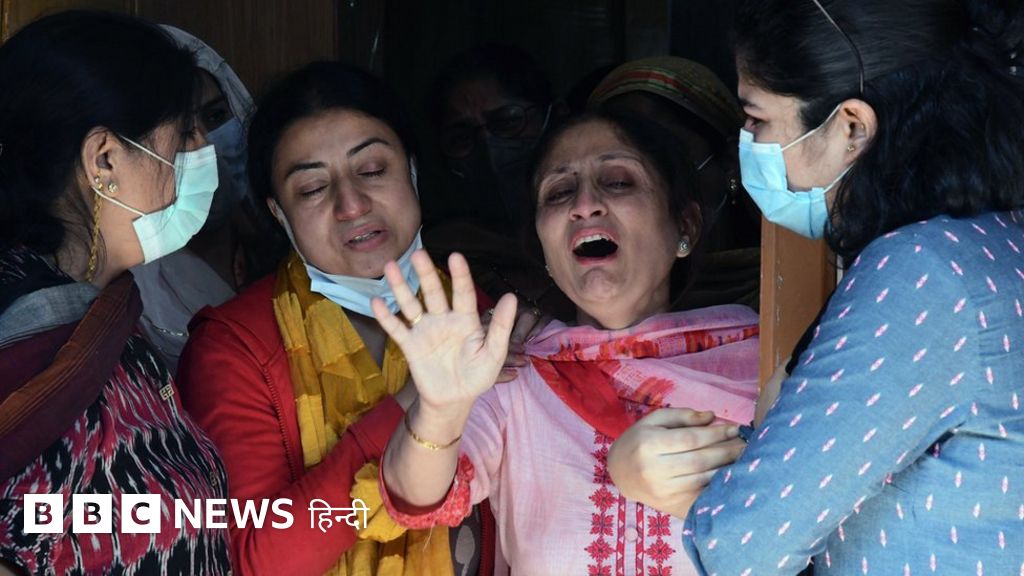 कश्मीर में गुरुवार के आतंकी हमले में मारी गईं सरकारी स्कूल की प्रिंसिपल सतिंदर कौर के शोक-संतप्त परिजन