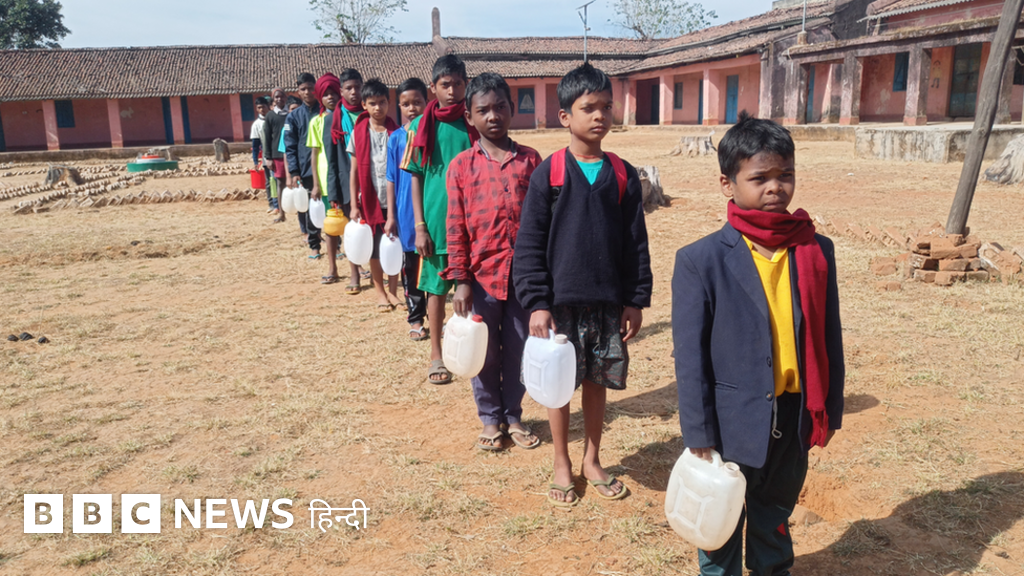 दोपहर के एक बजे हैं. पाँच साल के ईशांत मुंडा पाँच लीटर का एक प्लास्टिक का डिब्बा लिए स्कूल से जंगल की ओर जा रहे हैं.